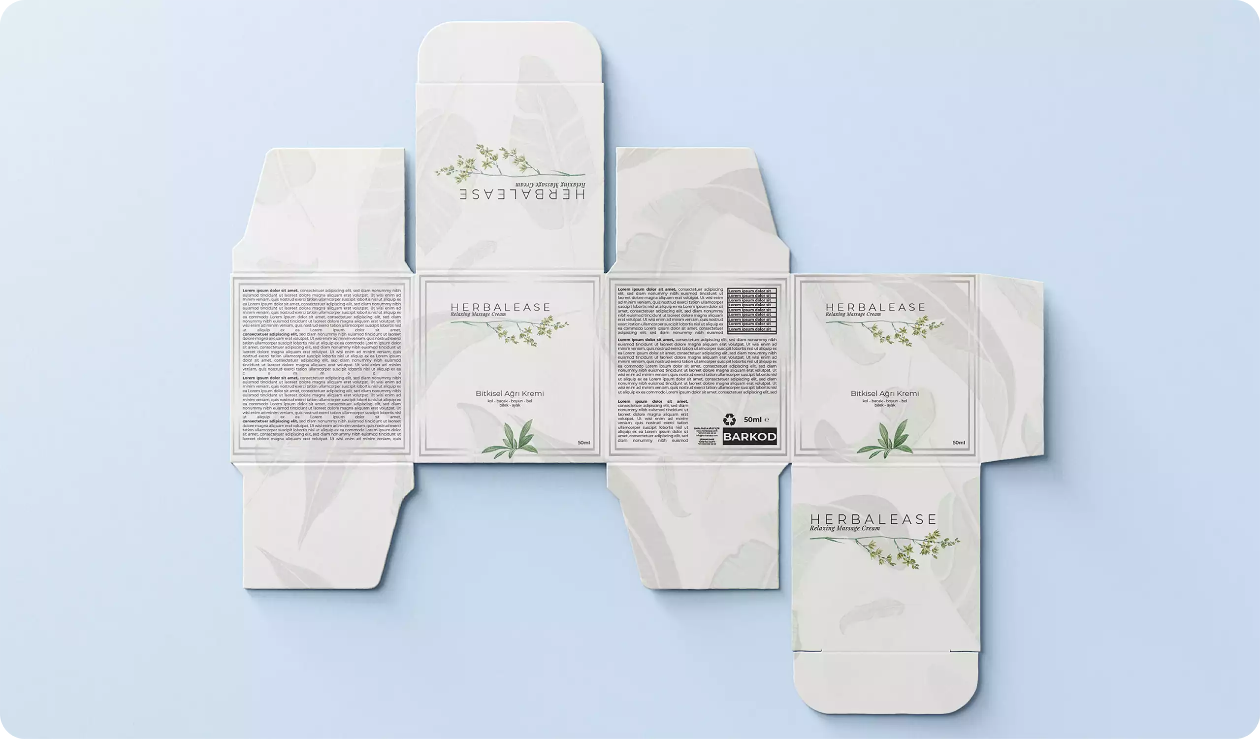 Herbalease´s graphic design is inspired by the power of nature. The product´s logo features a minimalist design with green leaf figures and a natural wood texture. This design reflects the natural and organic qualities of the product. Additionally, the packaging design incorporates a natural wood texture, giving the product a natural and modern appearance.